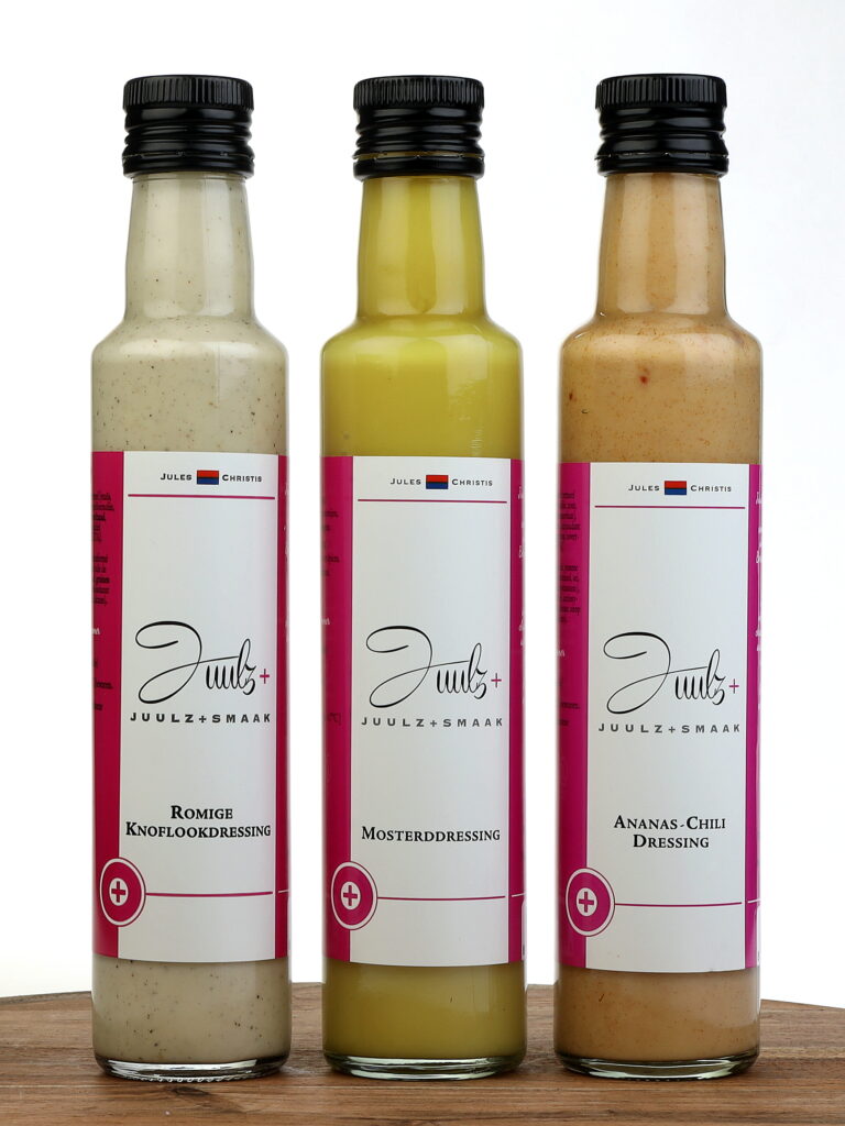 Verkrijgbaar in de smaken, Mosterd – Romige knoflook – Ananas Chili